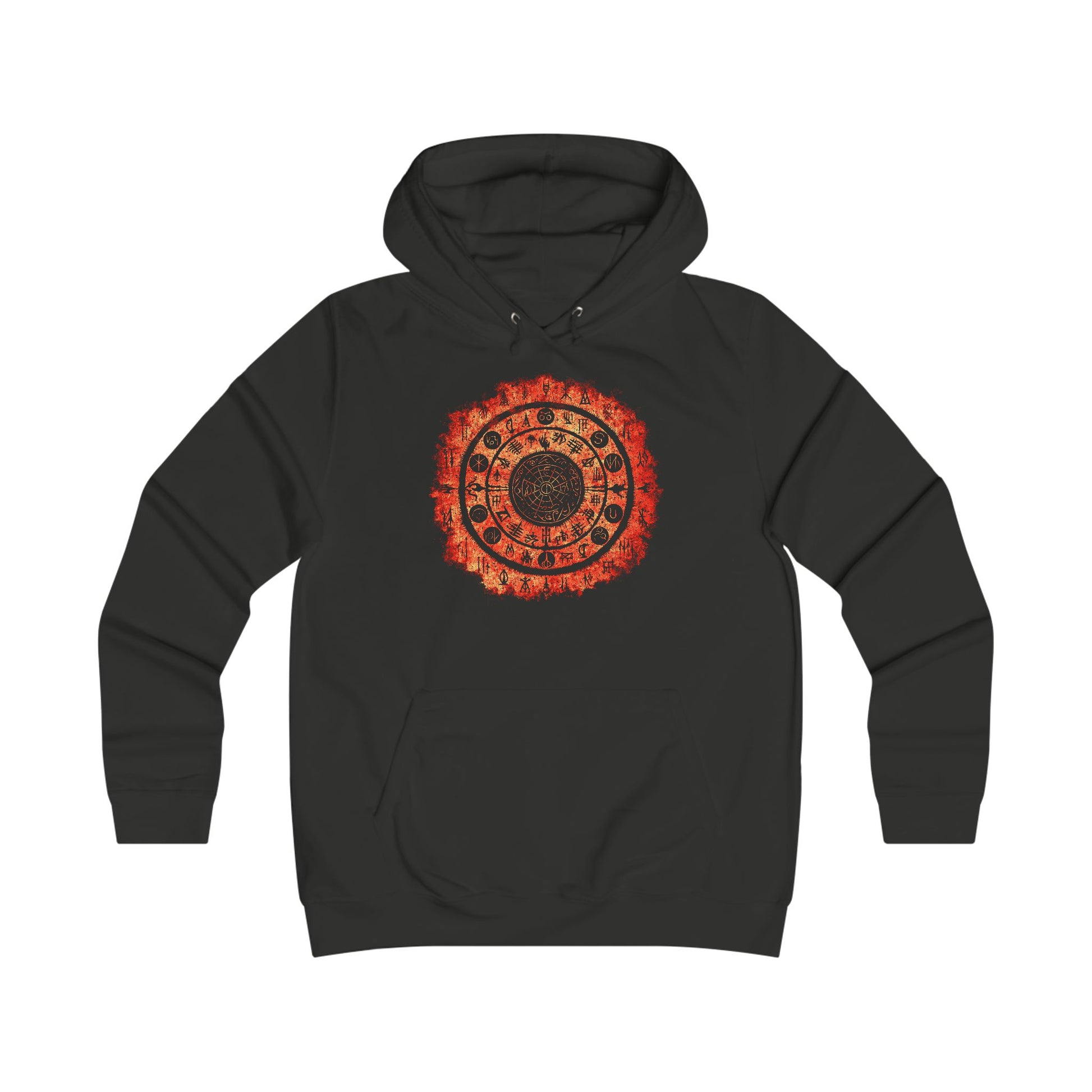 Embark on a mystical journey with our enchanting ladies' hoodie, perfect for those intrigued by the dark arts, ancient spells, and mystic realms. It captures the very essence of arcane fashion. This hoodie is meticulously designed for a feminine fit and maximum comfort, featuring a double fabric hood, a kangaroo pouch pocket with a discreet opening for headphone cords, ribbed cuffs and hem for a snug and stylish fit, self-colored drawstring cords, and impeccable twin-needle stitch detailing for lasting quality. Its smooth surface serves as the ideal canvas for detailed, vivid, and haunting prints that breathe life into forgotten spells and mystical symbols.